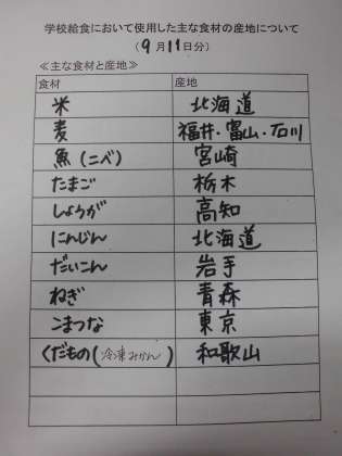 今日の献立)麦ごはん・牛乳・手作りふりかけ・魚の立田あげ・かきたま汁・果物(冷凍みかん)
