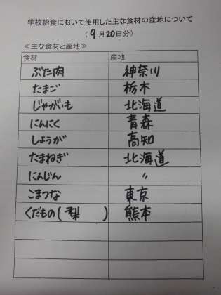 9月20日(金)の給食