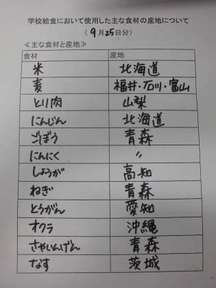 9月25日(水)の給食
