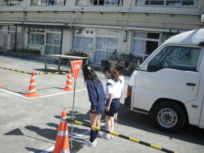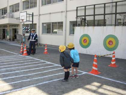 横断歩道の渡り方や見通しの悪いところの渡り方など教えていただきました。