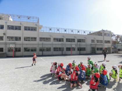 11月22日(木)、タグラグビー教室がありました。ゲストティーチャーは、元ラグビー日本代表の望月雄太さん。タグとり鬼ごっこや、トライ練習など45分間たくさん体を動かしました。授業の最後には、ロングパスや、ボールを高く蹴り上げる様子を間近で見せていただき、大興奮の子どもたちでした。