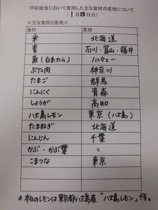 1月28日(火)の給食