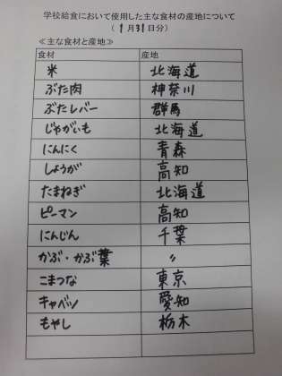 ゆく1月を思い返しながら、くる2月を元気にすごすよう、今日もよくかんで、しっかり食べて、食事に感謝して、後片付けまでていねいにおこなってください。
