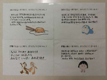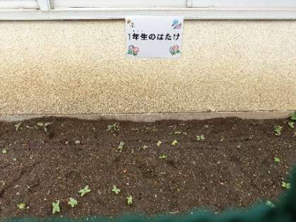 みなさん おべんきょう がんばっていますか。 せんせいたちの すきなきゃらくたあのしょうかいと このまえ しょうかいした あさがおです。 「1ねんせいのはたけ」があります。 たくさん めがでてきたので みにきてください。
