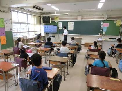 教室では、新しい生活様式を踏まえた【学校生活の10の約束】や、トイレ、水飲み場の使い方などについて学習をしました。