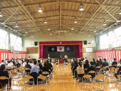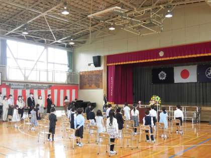6日に入学式が行われました。今年度は、感染症予防のためクラスごとに入学式を実施しました。人数は少なかったですがその分、いつも以上に子どもたち一人一人の顔がよく見える式になりました。緊張して式に臨む姿が微笑ましかったです。