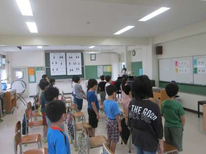 今日は進級して初めて、図工と音楽の学習をしました。図工では友達の作品の鑑賞をし、音楽では手拍子でリズムを打って楽しみました。色や形、音に親しむ気持ちを改めてもち、子どもたちの表情もほぐれていました。今後の学習が楽しみです。