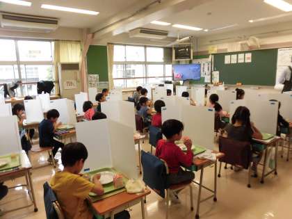 学校では、コロナウィルスに対策に教員・主事が全力を注いでいます。担任による教室内外の消毒、学校主事による水飲み場、トイレなど消毒、教室内での子ども同士の距離の取り方の指導、教員による給食の配膳などやることはたくさんです。(写真は本日の給食の様子です)子どもたちも頑張っています。休み時間の様子を見ているとトイレに入るために決められた場所で待っていたり、教室で話をするときは少し離れたりするなど子どもながらに工夫をしています。