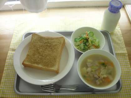 今日の献立は、セサミトースト、白いんげんの田舎風スープ、