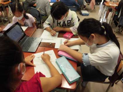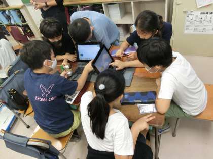本日5時間目、4年1組にて校内研究授業が行われました。4年生は、総合的な学習の時間で「福祉」について学ぶ中、プログラミングを使った活動もしています。今日は、レゴWeDoでプログラムを試行錯誤しながら作成し、センサーに手を近づけると動く扇風機を作りました。目や指先の不自由な人などに役立つ便利な道具であることに気づき、学びを深めることができました。