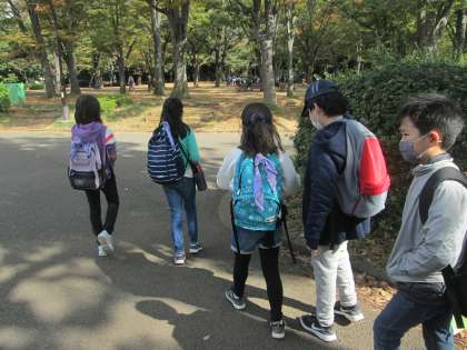 10月30日、遠足に行ってきました。4年生は歩いて駒沢公園へ。待ちに待った遠足ということもあり、足取りは軽く、あっという間に公園に到着しました。公園では班に分かれて「秋の駒沢公園ツアー」を開催しました。公園内に散らばっている先生・主事さんを見つけ出し、ミッションをクリアしていくものです。役割分担をして効率よく先生を探し出したり、仲間と協力してミッションをクリアしたりと、4年生らしい頼もしい姿が見られました。また一つ、素敵な思い出が増えました。