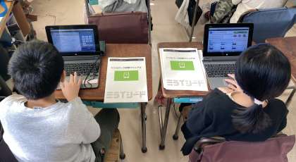 タブレット型パソコンを使って、ドリルパーク「ミライシード」(学習ドリル)にアクセスしました。この時間では、ミライシードへのアクセスの仕方や教科別の学習ドリルに取り組みました。