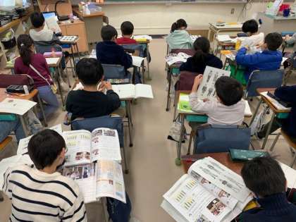世田谷区の人口の移り変わりや、事件の発生件数のグラフ資料から読み取りをしました。「人口が増えているのに、事故や事件の発生件数が減っているのはなぜだろう。」という疑問が挙がり、「警察署の人が活動しているからだ。」と予想しました。
