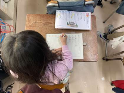 例えば、「勝」の字を先日、学習しました。画数も多く、何より、字が複雑です。横ぼうが一本増えてしまったり、はらいの書き出し位置が違っていたりと細かいミスが目立ちました。間違えやすい字については、再度指導を行っています。