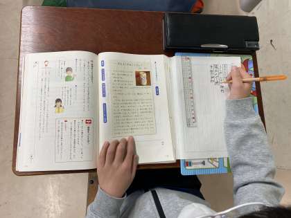 国語の学習では、お気に入りの場所について紹介する学習に進んでいます。子どもたちは、思い出のある場所を1つ選んで紹介文を書いています。