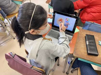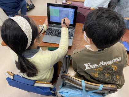 今日は、イラストを描いて、じゃんけんやおみくじなどをプログラミングして、友達と交流しました。