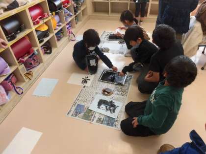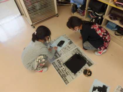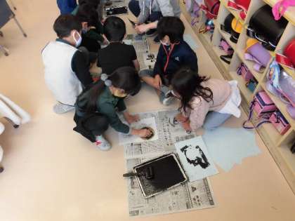 1年生は、図工の時間に、紙でスタンプを作りました。