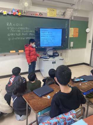 「聞いている人を見ながら伝えること」を意識させて取り組みました。子どもたちは、タブレットの操作にも慣れてきて、2学期に取り組んだタブレットの知識を活用しながら学習しています。