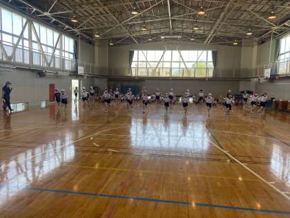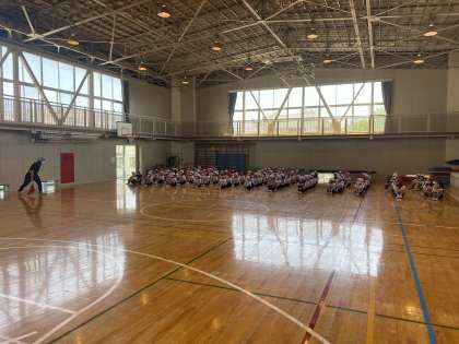 遠足に続き、天気に恵まれる4年生!今日は、校庭で50m走の計測をしました。はじめに、体育館で走る順番や合図の確認をしました。次に、校庭で計測をしました。