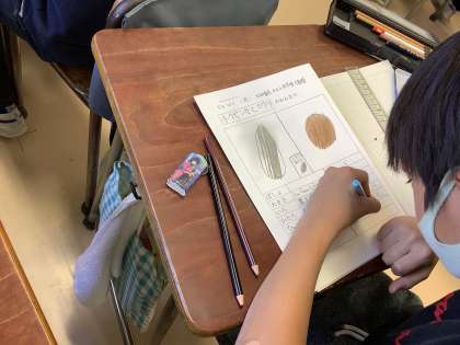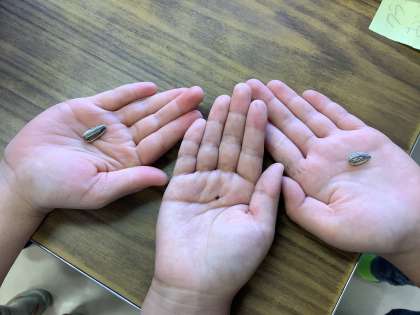 「植物を育てよう」の学習では、ホウセンカとヒマワリの種の観察をしました。2つの種を比べて観察し、似ているところや違うところを探しました。大きさや形、色や模様などの違いや、手触りやにおいなど実際に手に取ってみて分かることもたくさんありました。