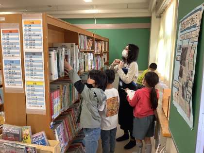 3年生の図書室利用が始まりました。図書室の過ごし方や本の探し方などを新しい司書さんに教えていただきました。読書が好きな子どもたちが多く、貸し出しが始まると即座に本を探し、読書に没頭していました。図書の時間や休み時間を通して、子どもたちが様々な本と触れ、読解力や想像力を広げられる機会を増やしていこうと思います。