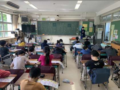 線からはみ出さないように手本をなぞったり、文字のバランスに気を付けたりして書かせています。ご家庭でも、子どもたちが丁寧に宿題に取り組めているか見てさしあげてください。