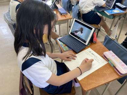 今日は、はじめに観察カードの書き方を学習しました。次に動画の「つばさがやってきた!」を視聴しました。ツバメの生態について見た後に観察カードを書きました。1時間で完成していないので、次回も続きを書いていきます!