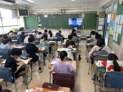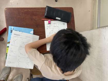 今日は、2種類の三角定規の角を合わせて、何度になるか考えました。子どもたちは、分度器で角度を正確に測っていました。分度器は、5、6年生でも使っていくので、しっかりと指導していきます。
