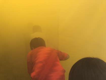 避難訓練を行った後、煙の中を避難する際の、煙中訓練を実施しました。