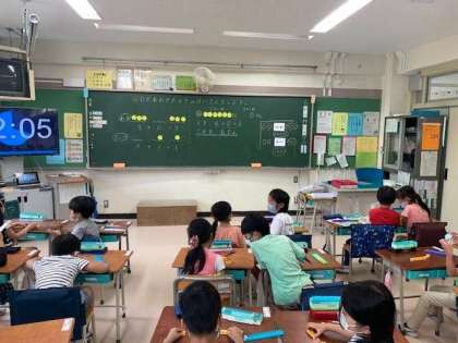 「ぜんぶでいくつ」の学習をしました。はじめに、教科書の玉入れの問題では、玉の数が0のときの足し算について考えました。