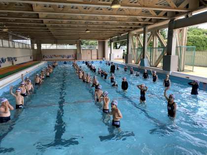 水泳学習を行いました。子どもたちは、大興奮!初めに安全確認やきまりなどを丁寧に確認しました。次に、水中で息を吐く、バブリングの練習をしました。そして、潜ったり、浮いたりした後、最後に、けのびや好きな泳法で泳ぎました。45分間というあっという間の時間でしたが、有意義な学習時間を過ごすことができました。