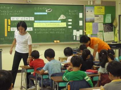 東京都教育庁指導課から2名の方が来校し、1年2組の人材育成担当教員と新規採用教員の授業を参観されました。連携しきめ細かく算数指導をしているところを見ていただきました。これからもこのような2名体制を進めていきたとお話しされていました。子どもたちに確実に基礎基本を身に付けさせるよう、2学期も2人で連携を図り取り組んでいきます。