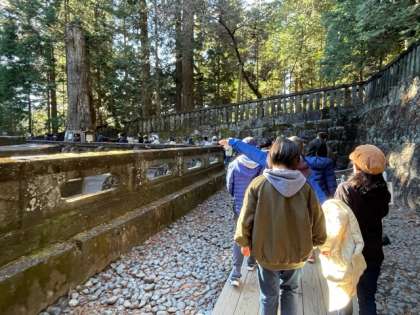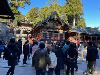 東照宮の方の説明を聞きながら、重要文化財に指定されている社殿や建造物を興味深く観察しました。200段を超える階段を上がりながら、日本の歴史に思いを馳せました。