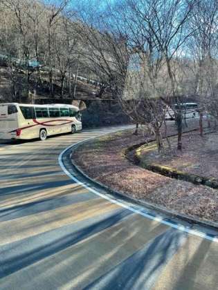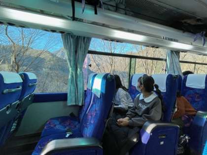 いろは坂を移動中です。第二いろは坂は全部で20カーブあるそうです。カーブする度に見える景色に、子どもたちから歓声が上がっていました。