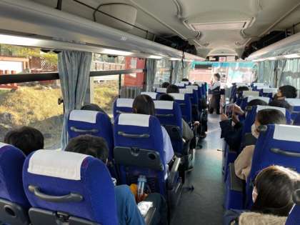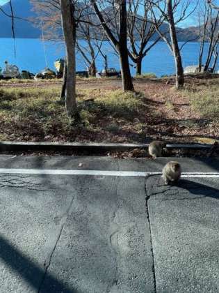 第一いろは坂を移動中です。昨日通った第二いろは坂は20カーブ、第一いろは坂は28カーブあります。道の途中で猿を見つけ、子どもたちは大喜びでした。