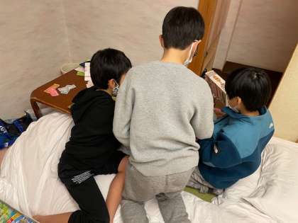 2日目の夜は、それぞれの部屋で室内レクをして過ごしました。トランプや人生ゲームなどで楽しく遊び、仲を深めていました。