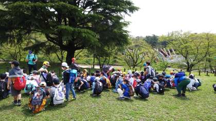 すばらしいお天気にめぐまれました。こどもの国に着きました。グループごとに分かれオリエンテーリングをしています。