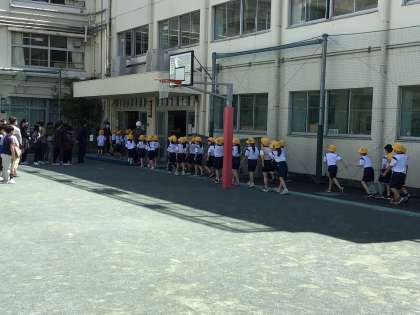 2時間目に今年度1回目の避難訓練を行いました。地震大国の日本では、いつどこで地震が起きても不思議ではありません。自分の身を守る術を毎月一回の避難訓練で身体化します。今日は1年生は避難訓練に見学だけの参加でしたが、とても上手に見学していました。2年生〜6年生も真剣に訓練に臨んでいて立派でした。