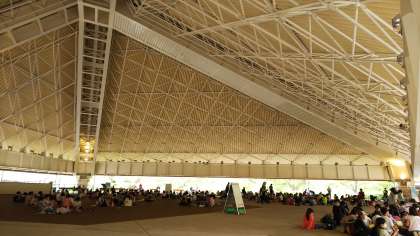 霧雨が降ってきたので、屋根があるところでお弁当を食べます。朝早くからの準備、ありがとうございます。