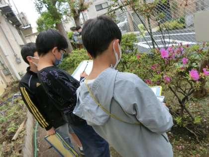 5年生の図工では、平面作品「ジャングルナイト」制作に向けて、校庭で植物を見ながら写生を行いました。春の風を感じながら気持ちよく制作に取り組みました。