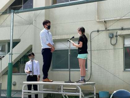 4月28日(木)に離任式がありました。昨年度お世話になった先生がご来校くださり、お別れの挨拶をしてくださいました。5年生からはプレゼントとしてお手紙を渡しました。また、代表となった児童は、丁寧にそして堂々と、言葉にのせて感謝の気持ちを届けることができました。お互いにお別れを伝え、新たなよいスタートのきっかけになることと思います。