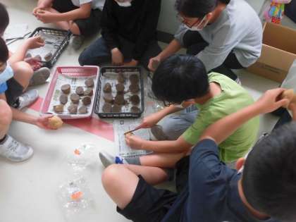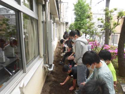 理科の学習に向けて、理科室の裏にじゃがいものたねいもを植えました。