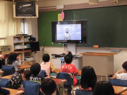 5月9日(月)の放送朝会はオンラインで行いました。どのクラスも大型画面を通して校長先生のお話をしっかりと聞いていました。