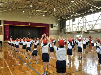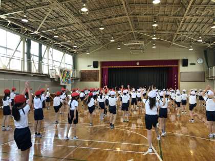 体育発表会の練習が始まりました。今年度は、新しい学習が始まり、2階のリーダーになった3年生。いろいろなことを「やってみよう!」をテーマに踊ります。音楽に合わせてノリノリに練習する子どもたち。振りが出来ると「できた!!」と嬉しそうな声が聞こえてきました。