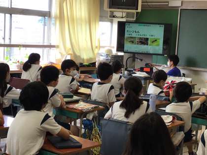 今日の音楽朝会は動物に関係のある名曲を聴きました。曲想からどんな動物をイメージできるのか、三択で考えます。楽器の音色や演奏の工夫で思わず「あ、これはハチだ」と納得です。