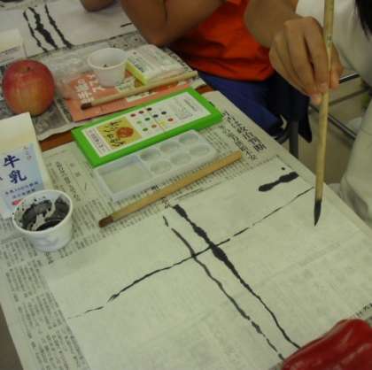 興味と、緊張の中、恐る恐る筆に墨をつけ、描き始めました。