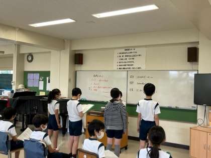 合唱曲「南風にのって」の歌唱テストがありました。正しい発声や声の大きさ、強弱を意識して歌いました。テスト後には友達の歌声を聴いて、「聴きやすい歌声でした。」、「強弱がはっきりついていました。」と感想を発表しました。自分で歌ったときだけでなく友達の歌声からも、歌がもつ"心地よさ"を感じることができました。