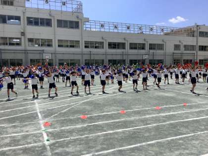 先日は、暑い中、体育発表会のご参観ありがとうございました。演技が始まる直前、子どもたちは顔がこわばり緊張した様子でした。しかし、演技が始まると楽しそうに踊る様子が見られました。