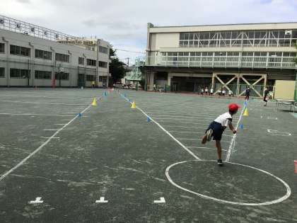 体力テストの一環で今日は朝から校庭でソフトボール投げの測定を行っています。国・都・区の毎年の結果を見ても、この「投」のスコアは低いです。日常生活の中でこの「投」の動きはないからです。意識して取り入れないとスコアアップはないので、体育の授業や休み時間など可能な範囲で取り込んでいます。