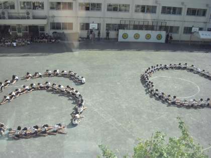 合同アトラクションの組体操では、「中丸小バースデーケーキ」を表現しました。